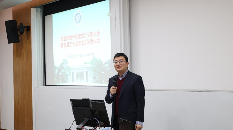 全体与会代表首先观看了习近平总书记新年贺词,从总书记新年贺词看非凡中国,一起回顾了2021年难忘的“中国声音、中国瞬间、中国故事”。学院院长张显程作2021年度学院工作报告和财务报告。报告对2021年学院强化政治理论学习、完善教育教学举措、推进一流学科建设、对接国家重大需求、夯实人才队伍建设和共谋未来发展规划六方面的成绩进行了总结,肯定了学院在学生创新创业竞赛、青年人才培养、优质生源质量提升等方面取得的成绩,对继续完善教育教学举措、推进一流学科建设等提出了期望和要求,以“登高瞭望,方知远山长。矢志不渝,更须再出发”与全体教职工共勉。随后,就学院经费使用情况做了汇报,代表们审议通过了学院工作报告和财务报告。