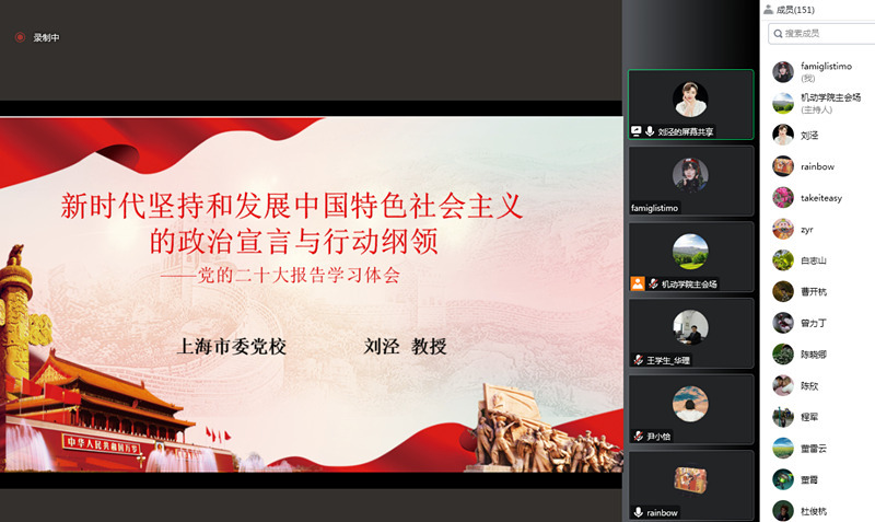 为深入学习宣传贯彻落实党的二十大精神,10月25日下午,365英国上市网站官网邀请中共上海市委党校科社教研部刘泾教授,作题为“新时代坚持和发展中国特色社会主义的政治宣言与行动纲领——党的二十大报告学习体会”的辅导报告。学院党政领导班子成员在线下参会,其他教职工通过腾讯会议参加学习。报告会由学院党委副书记李锦主持。